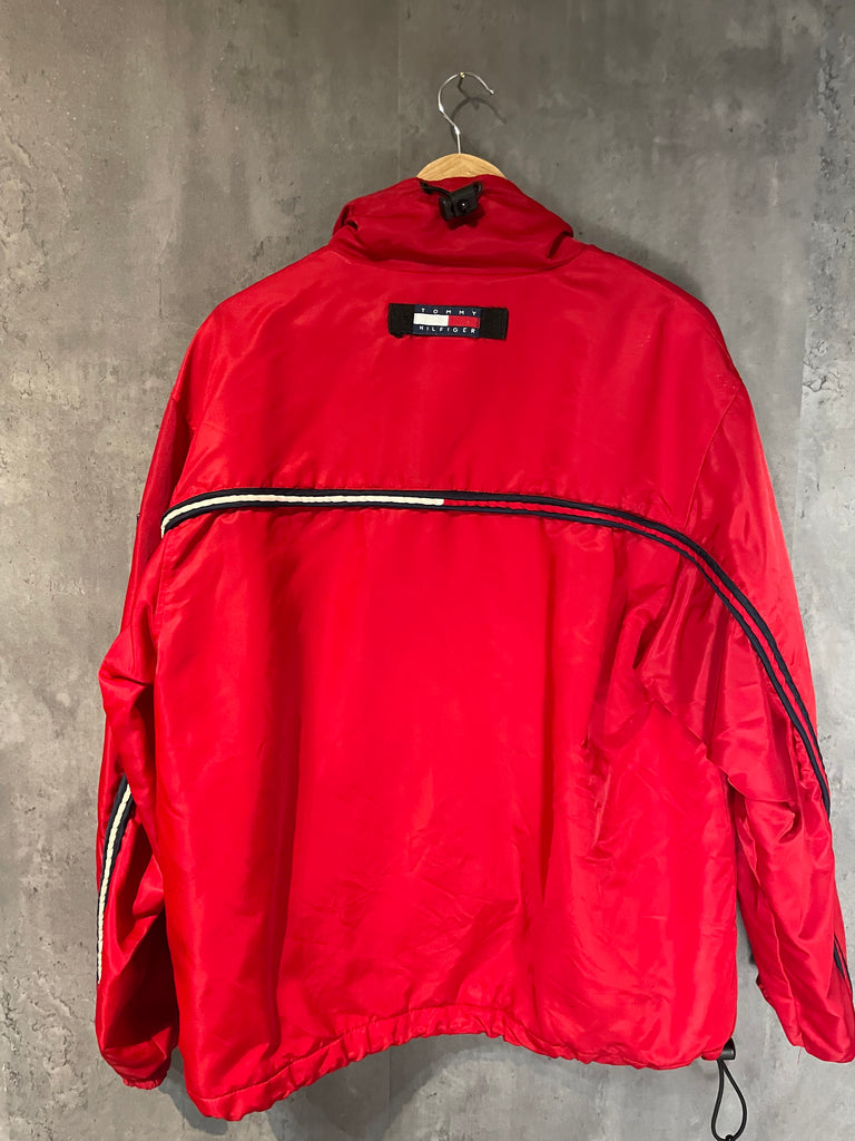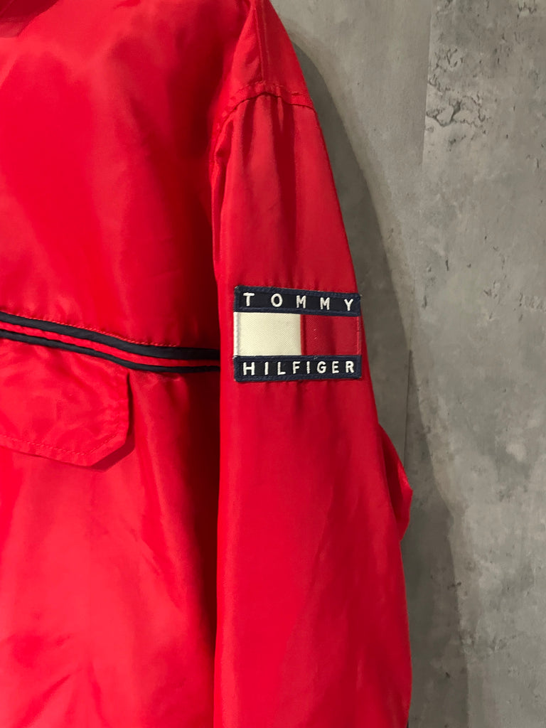 Tommy Hilfiger red heavy windbreaker pullover with pouch vintage