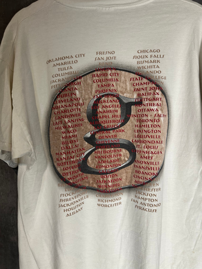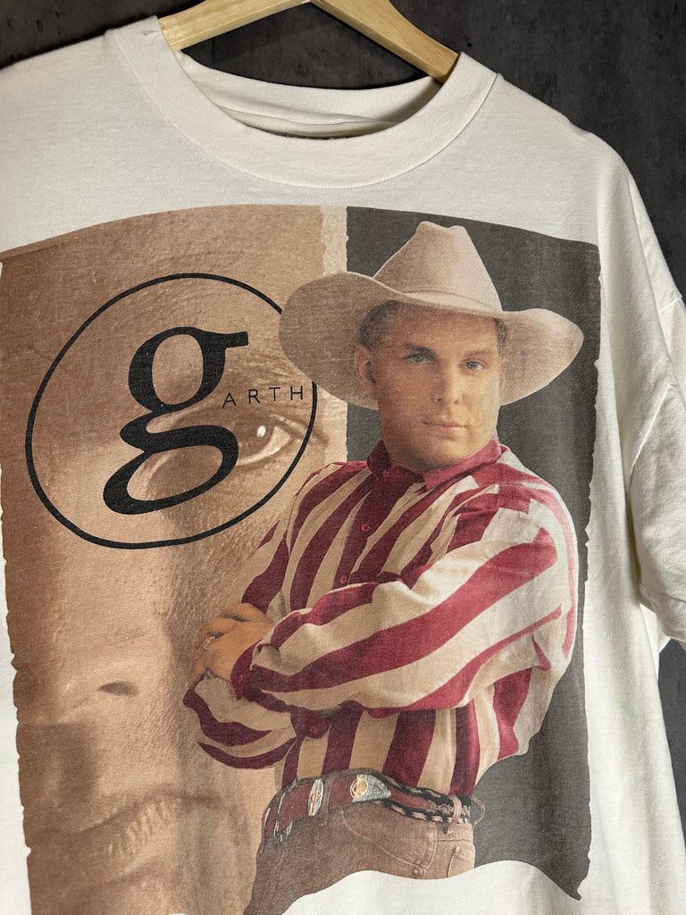 Iconic Garth Brooks tour tee from the 90s featuring a bold front graphic and tour dates on the back. Printed on a Hanes Beefy tag.